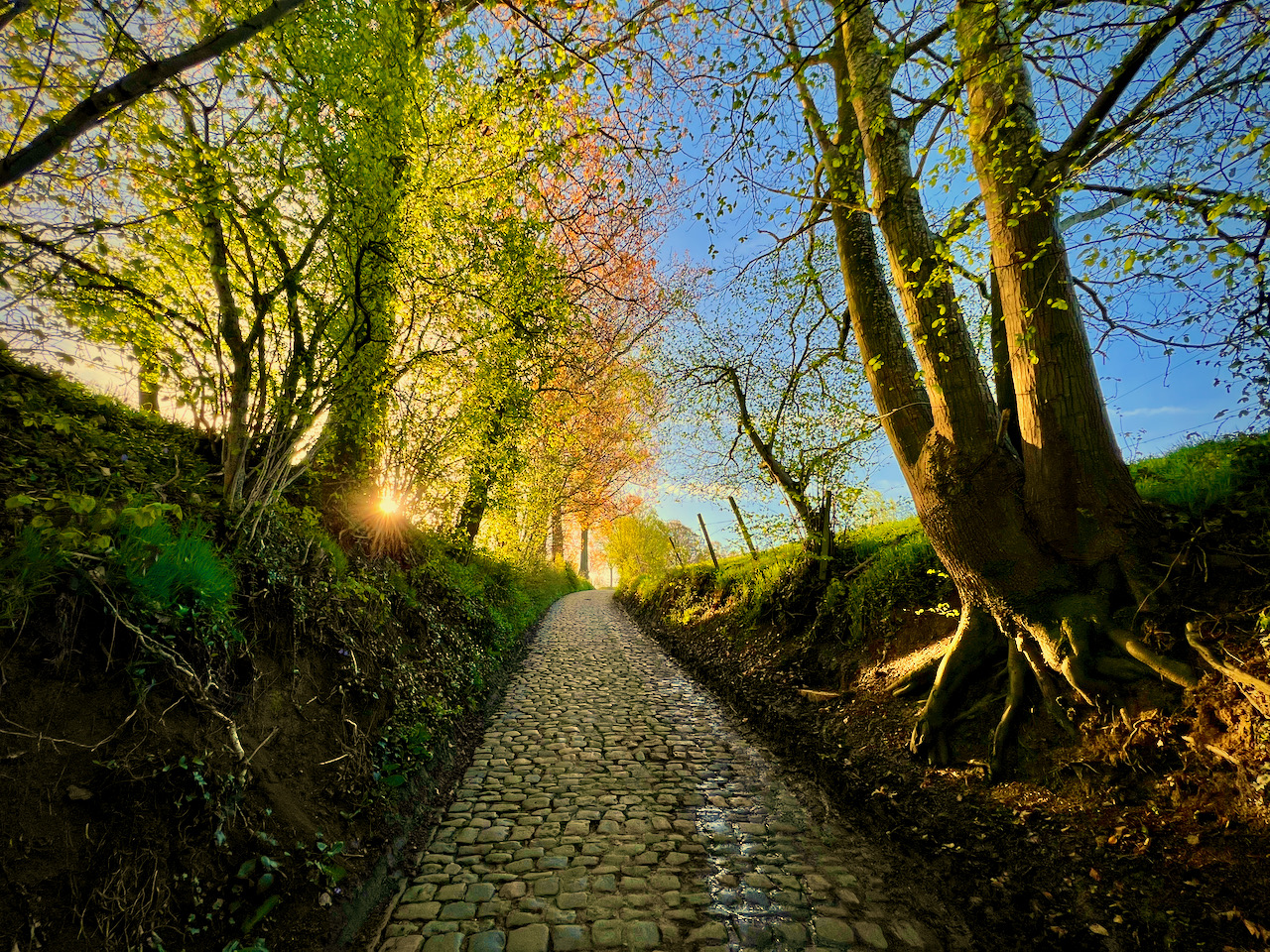 De Koppenberg, kuitenbijter van de Vlaamse Ardennen, koning der kasseien uit de Ronde van Vlaanderen. Hij lonkte al naar me vanop andere wandelroutes en vorige week waagde ik me eindelijk aan de klim. Zónder derailleur, mét wandelschoenen welteverstaan. Ik volgde een knooppuntenroute die me naar de beboste flanken van de ‘bult van Melden’ bracht. Perfecte timing, want in de lente is het hier extra bijzonder. Dan toveren duizenden wilde boshyacintjes het gebied om tot een feeërieke paarsblauwe bloemenzee.