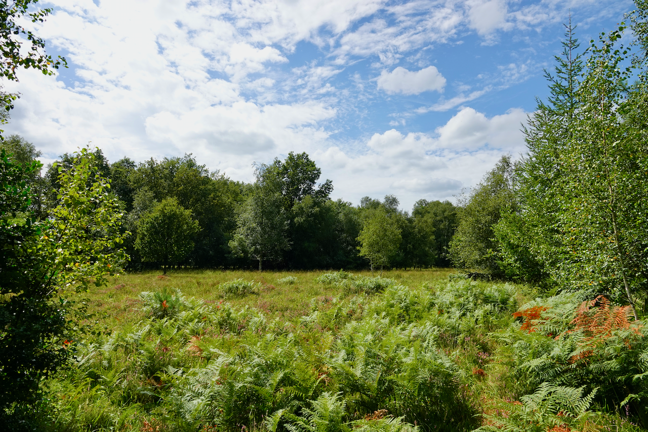 Hoewel de route officieel begint aan wandelknooppunt 76 niet zo ver van het vliegveld, startte ik aan KP 16, vlak aan brasserie Het Jagershof. Er valt, denk ik, wat te zeggen voor beide opties, maar als je het beste voor op het einde wil houden, dan zou ik kiezen voor KP 76. De route, die trouwens voor zo’n 70 % onverhard is, is mooi in haar geheel en daar doen ook de stukjes langs de oude vliegbasis geen afbreuk aan, integendeel zelfs. Maar voor mij persoonlijk blijft het Maldegemveld, het hart van het Drongengoed, het hoogtepunt. ‘Hoge’ venen, ‘Limburgse’ heide, woeste ‘West-Vlaamse’ wastines… Je vindt het er allemaal!