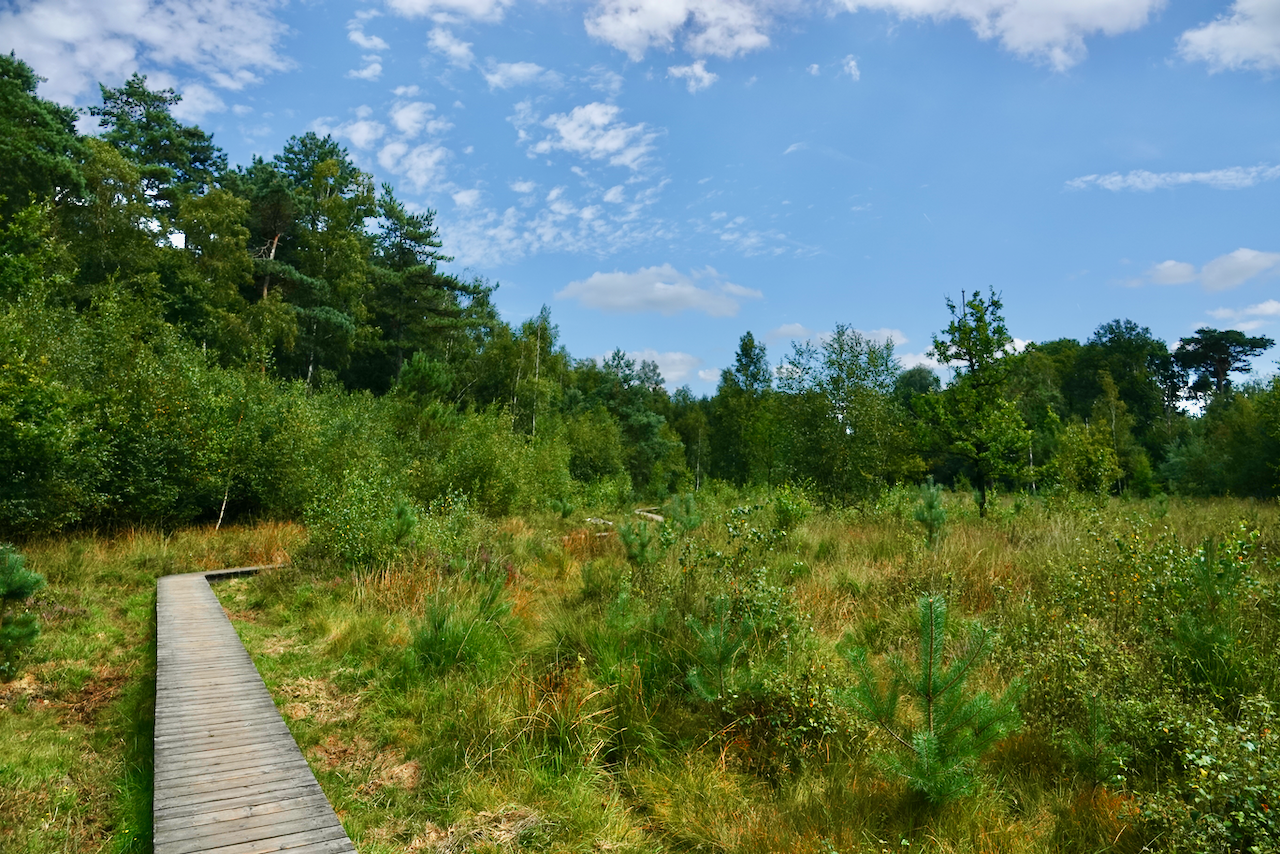 De route door het Maldegemveld leidt je langs enkele onvervalste brokjes natuur. Er zijn onverharde wegels naast grote open grasvlaktes, iets nauwere paadjes dwars door ‘woeste’ heidegronden, boslaantjes en -dreven in dambordpatroon en … vlonderpaden! Die laatste lijken in de zomer misschien overbodig, maar de ondergrond van dit natuurgebied is lichtjes moerassig en dat zal je tijdens nattere periodes zeker geweten hebben (of willen weten hebben).