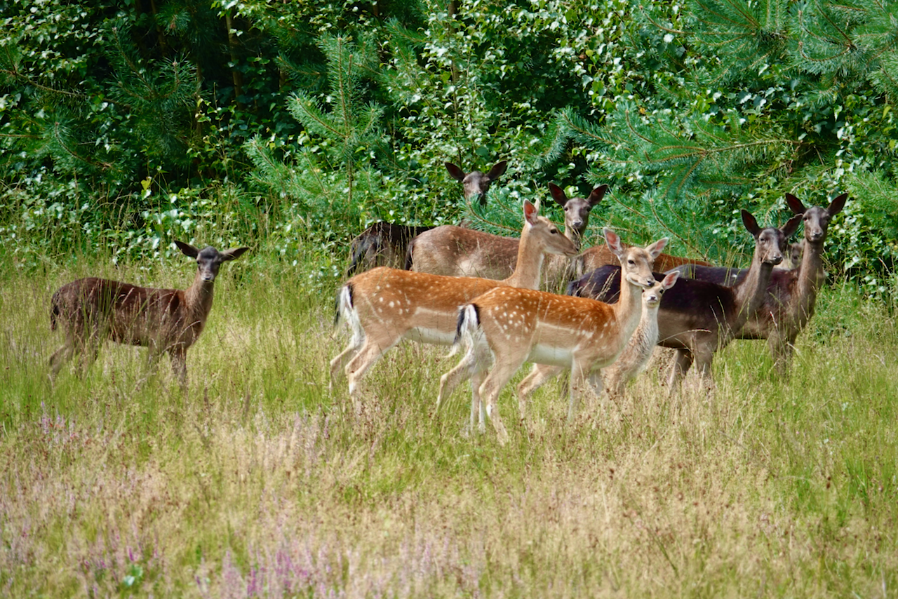 Vrij grazende Schotse Galloway runderen dragen bij tot de diversiteit van het landschap doordat ze niet enkel opschietende grassen eten, maar ook bijvoorbeeld jonge boompjes en struiken die anders de heide zouden doen dichtgroeien. Het Drongengoed wordt verder ook begraasd door schapen en als je geluk hebt, loop je er een ree of damhert tegen het lijf. Intussen weet ik dat je eigenlijk niet eens zoveel geluk moet hebben; daar kom ik later nog op terug.