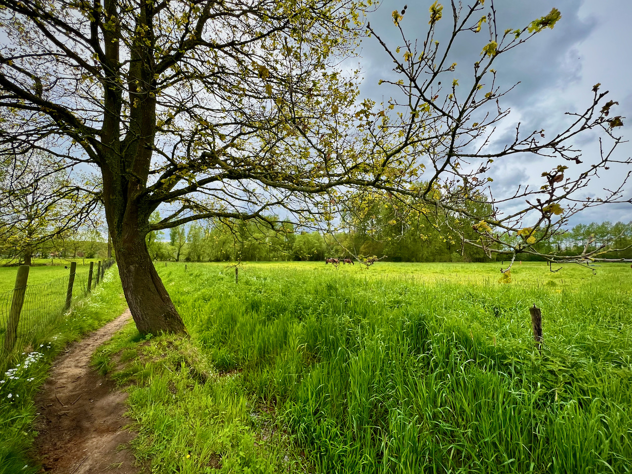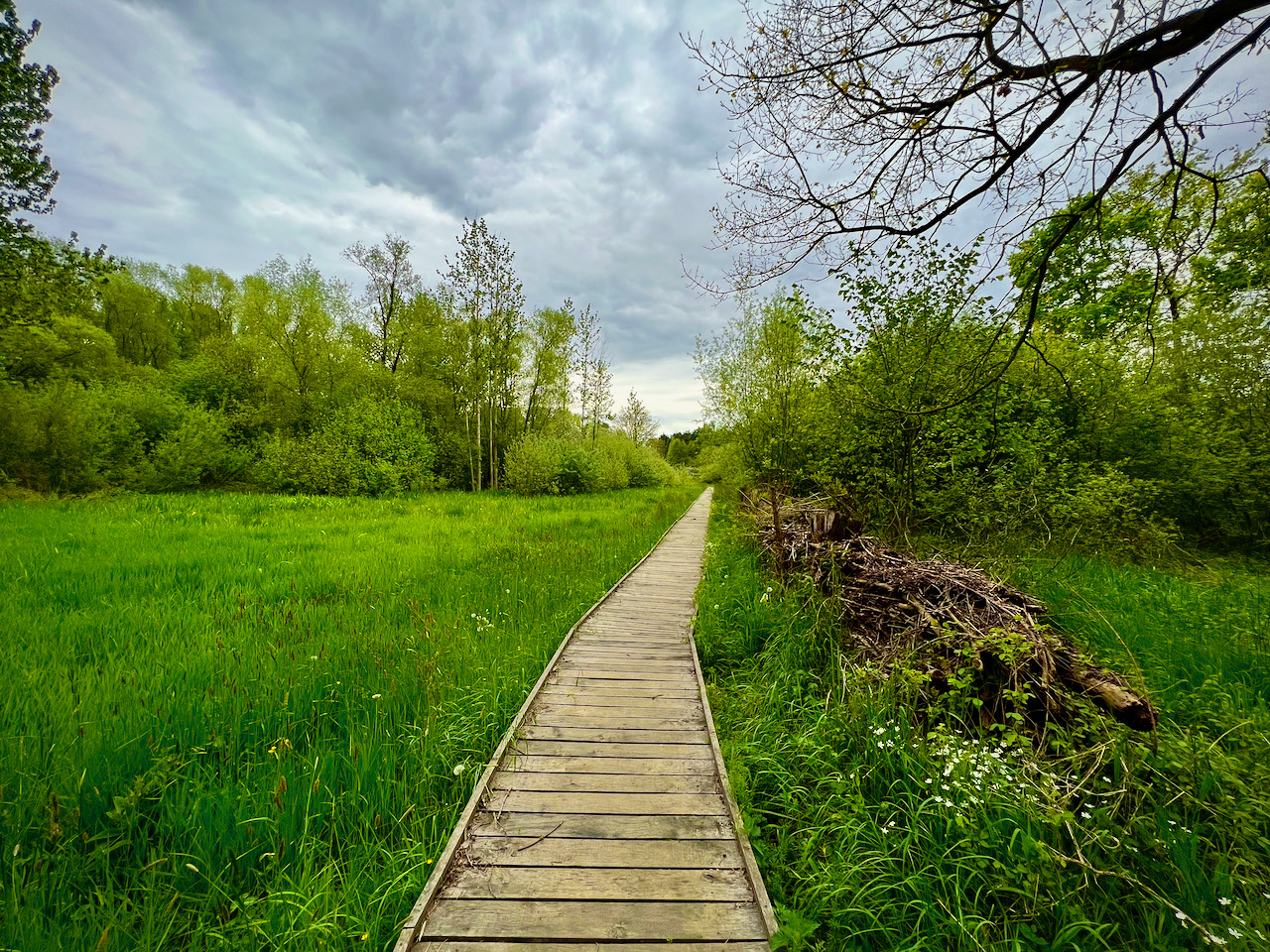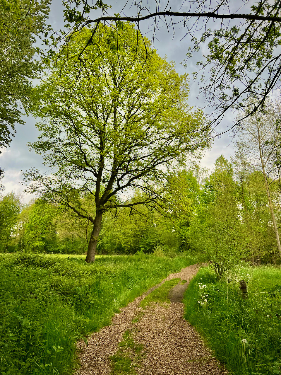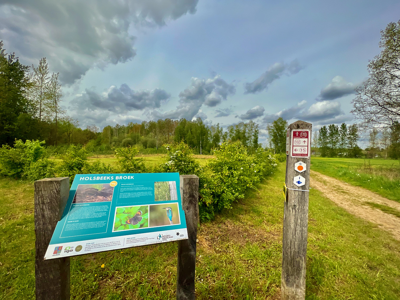 De wandeling die ik volgde, start officieel aan de Sint-Mauruskerk in Holsbeek. Toen ik daar aankwam, was het echter bijzonder druk en besloot ik een stuk van de aanlooproute langs de bebouwde kom in te korten tot aan de parking van voetbalclub V.K. Holsbeek. Misschien dat dit op andere dagen niet mogelijk is, maar die dag had ik de grote parking voor mij alleen. Bijkomend voordeel: ik belandde pardoes midden in de natuur. Het onverharde pad bracht me meteen naar het Holsbeeks broek waar poelen bruisten van het voorjaarsleven.
