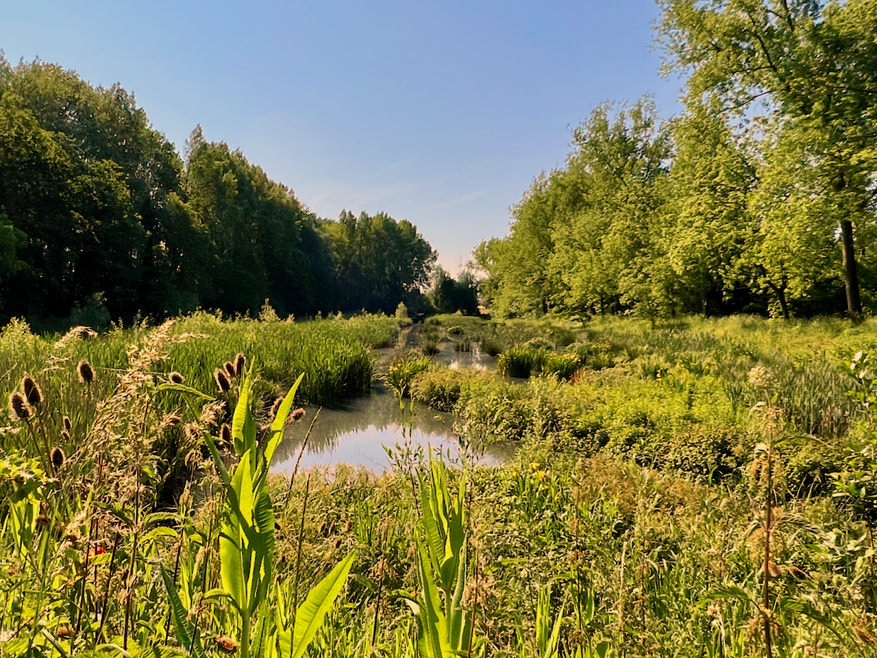 Een deel van het natuurgebied is een grotendeels moerassig weiland met een rijke plantengroei, vrij uniek voor de heuvelachtige Vlaamse Ardennen. Zo wordt het wachtbekken op de Bettelhovebeek ingenomen door een typische moerasflora en -fauna. Ik raad je aan om hier de route even te verlaten en het pad rondom de waterpartij (zo’n 500 m) te volgen. In de winter oogt het wachtbekken misschien een beetje desolaat, maar in de lente en zomer heerst er een drukte van jewelste. Tussen het weelderige groen spotte ik o.a. een reiger, een paar padden en veel libellen.