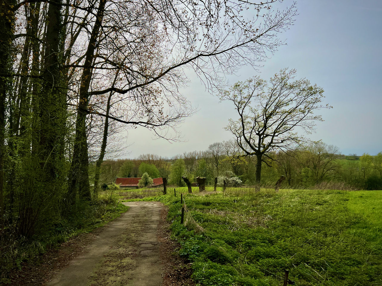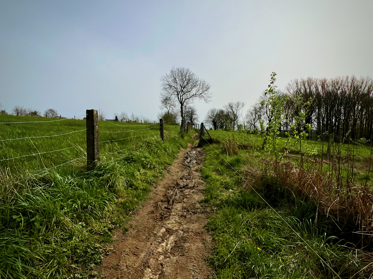Nadat ik vanaf de Onze-Lieve-Vrouw-Hemelvaartkerk, en passant langs het ommuurde kerkhof, écht aan de wandeling begon, kwam ik al snel terecht op een onverhard bemodderd pad. Het zou één van vele worden … Zálig!