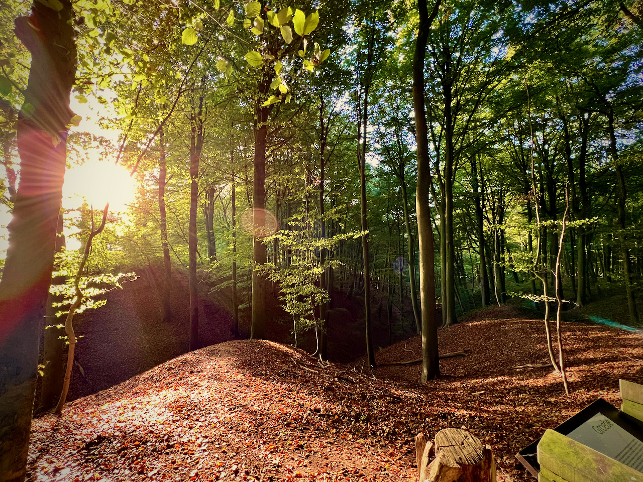 In het Neigembos komen verschillende uitzonderlijk goed bewaarde erosiegeulen of zogenaamde ‘groebes’ voor. Deze zijn ongeveer 12 000 jaar geleden, na de laatste ijstijd, ontstaan. Ze hebben een uitgesproken microklimaat en vormen daardoor unieke biotopen met zeldzame planten en dieren. Vroeger gebruikte men deze kleine valleitjes doorgaans als voetweg. Een voorbeeld daarvan is de Postkoetsweg in het Berchembos, maar ook in het Neigembos zijn de holle wegen spectaculair en vragen ze soms een plezierige inspanning om te bewandelen. Het prachtige vlonderpad dat je op de foto’s ziet, vind je niet op de knooppuntenroute zelf, maar een grote omweg moet je er gelukkig niet voor maken. Het pad bevindt zich dicht bij knooppunt 15 en is beslist de moeite waard! Ik zou het zelfs één van de mooiste plankenpaden die ik al gezien heb durven noemen …
