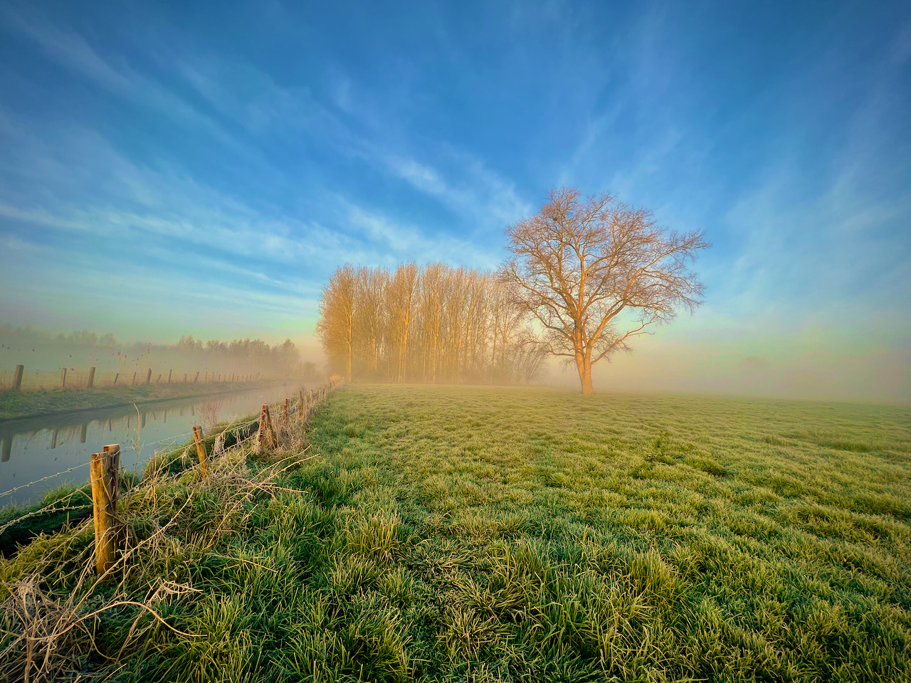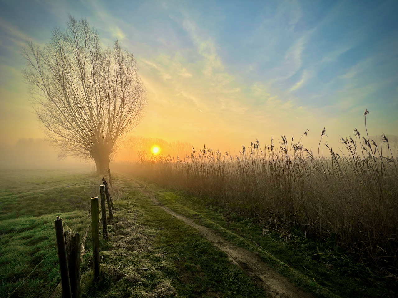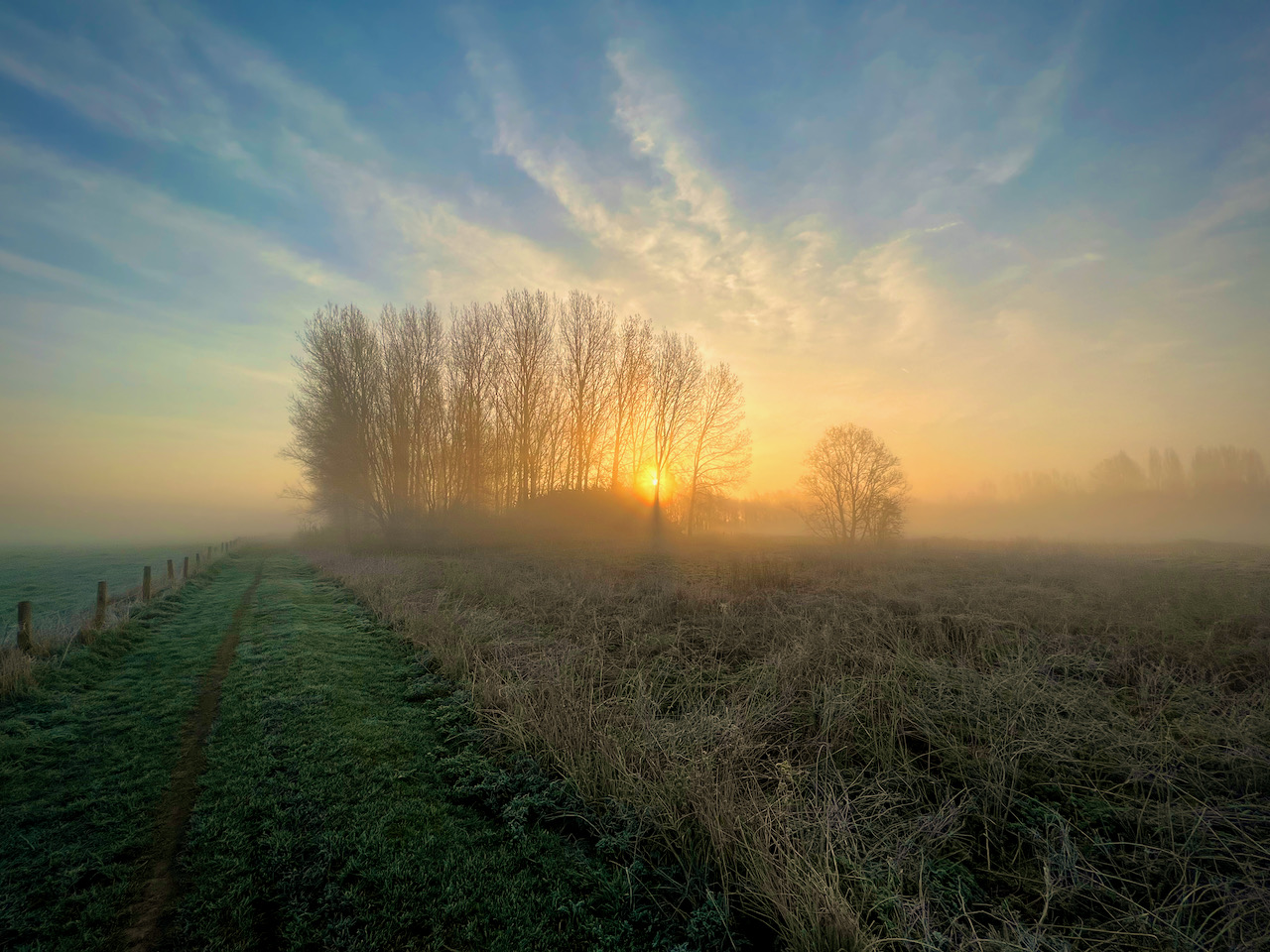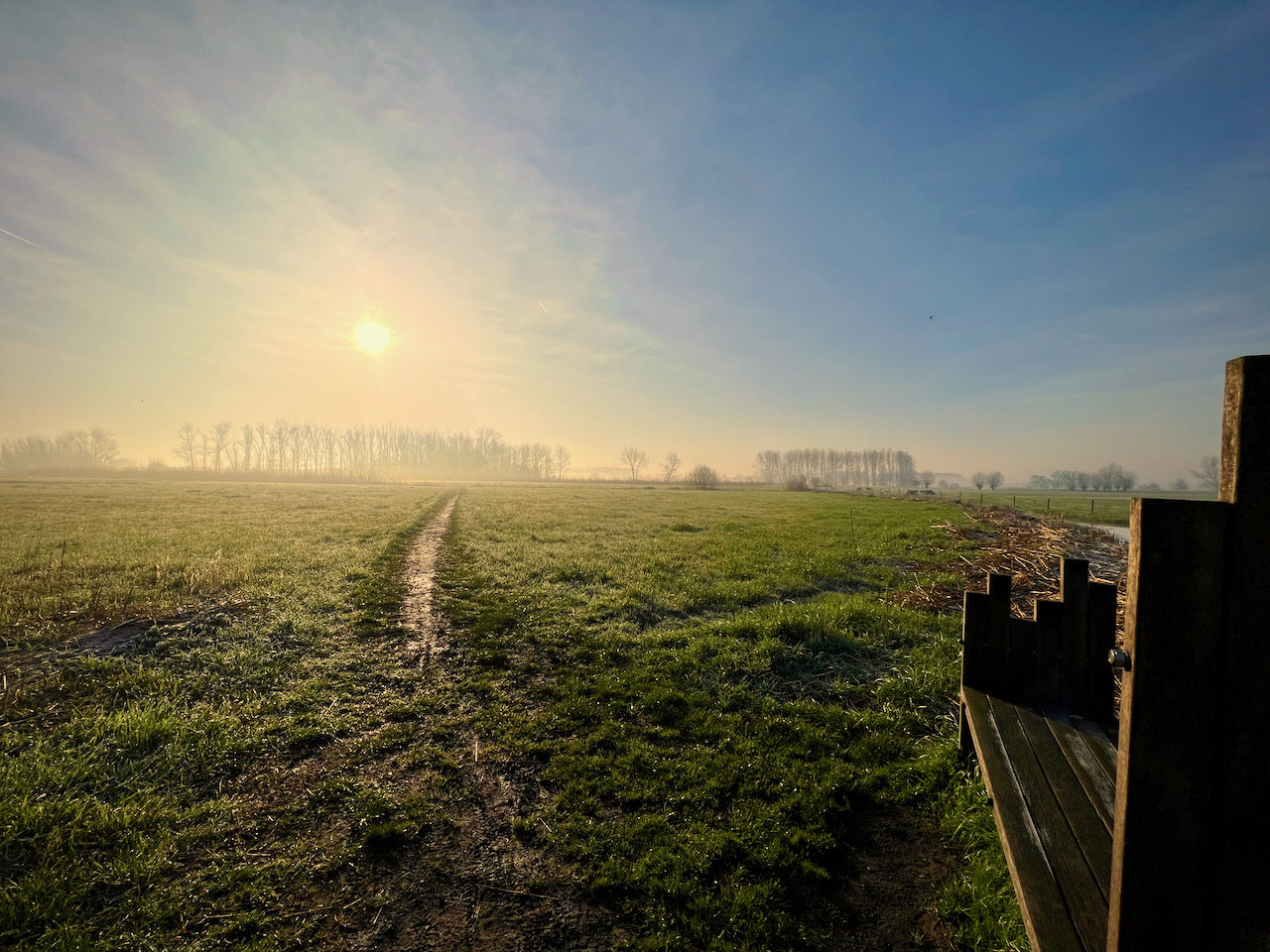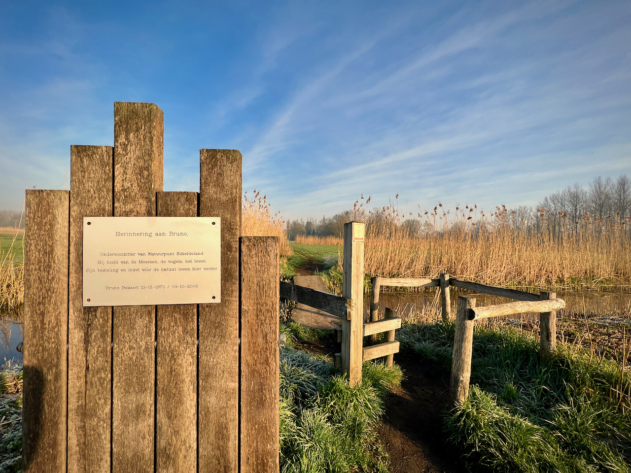 Of ik de Kalkense Meersen zo naderhand niet beu ben? Tuurlijk niet! Sinds ik het natuurgebied op een boogscheut van waar ik woon (her)ontdekt heb, ben ik er niet weg te slaan. Het is mijn favoriete hotspot om te jagen op het licht; ik moet niet eens belachelijk vroeg opstaan om er bij zonsopgang te zijn. Mijn dochter vindt dat ik intussen wel het label ‘ambassadrice van de Kalkense Meersen’ verdien. Zelf draag ik met trots de ordinaire status van topfan (en merci, Routen, om dit in jullie nieuwste magazine te bevestigen). Ik heb er zo mijn vaste, vaak zelfgemaakte routes, maar deze week volgde ik een suggestie van Routen: de Oude Schelde wandelroute. Hoewel ik geen nieuwe plekjes ontdekte — ik stapte deze route al zó vaak spontaan, zonder te letten op knooppunten — zag ik ‘mijn’ Meersen alweer in een ander (gouden) licht, dat van de opkomende zon. Het leverde prachtige foto’s op die ik in deze post graag met jullie deel.