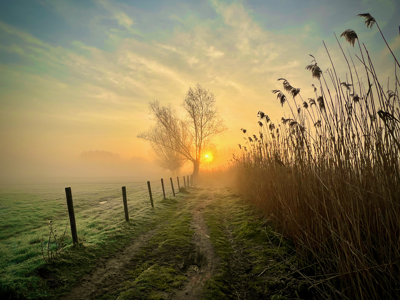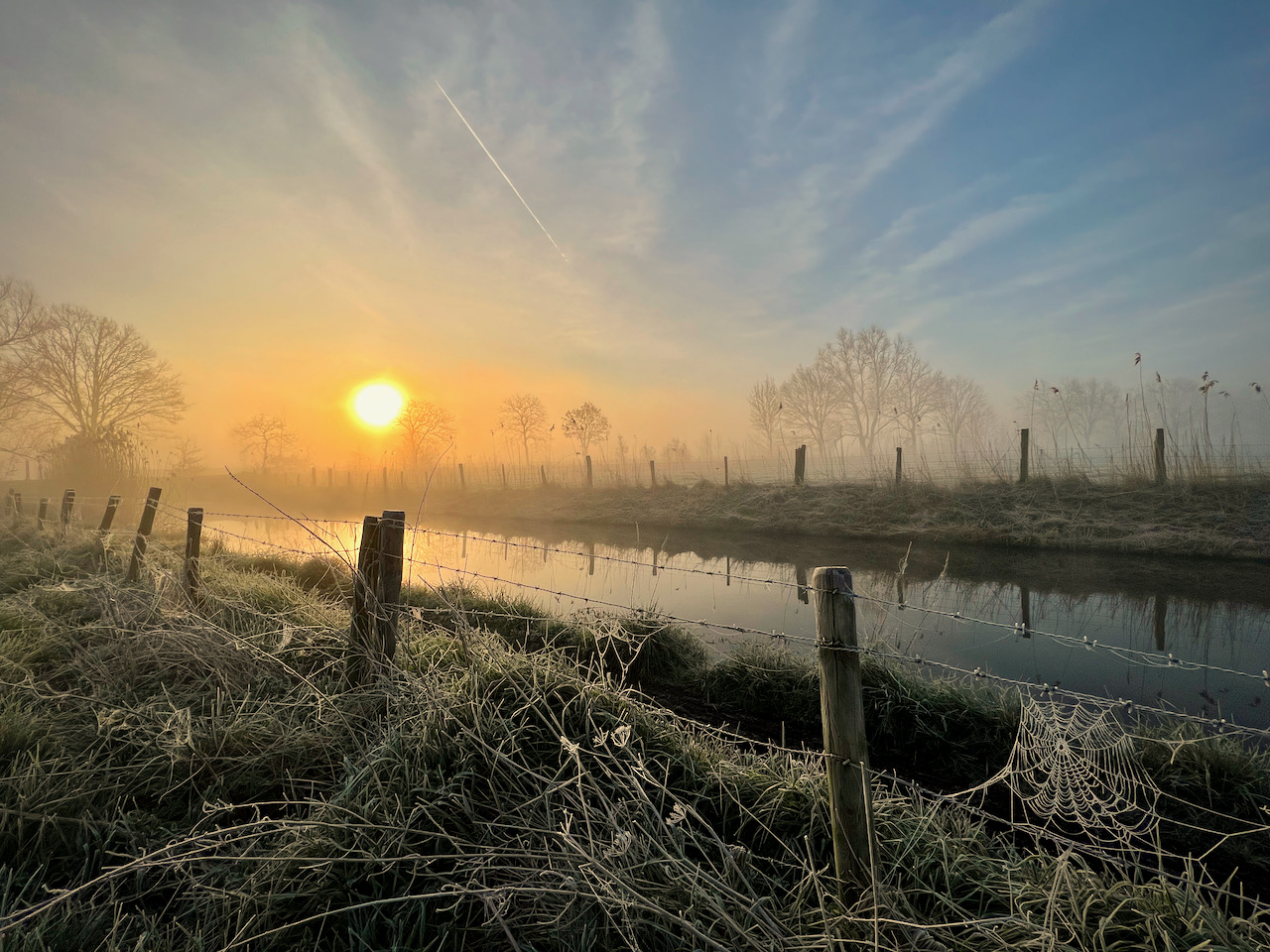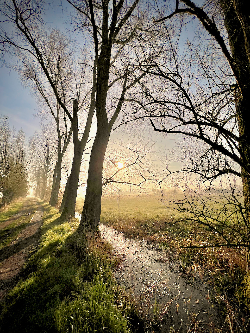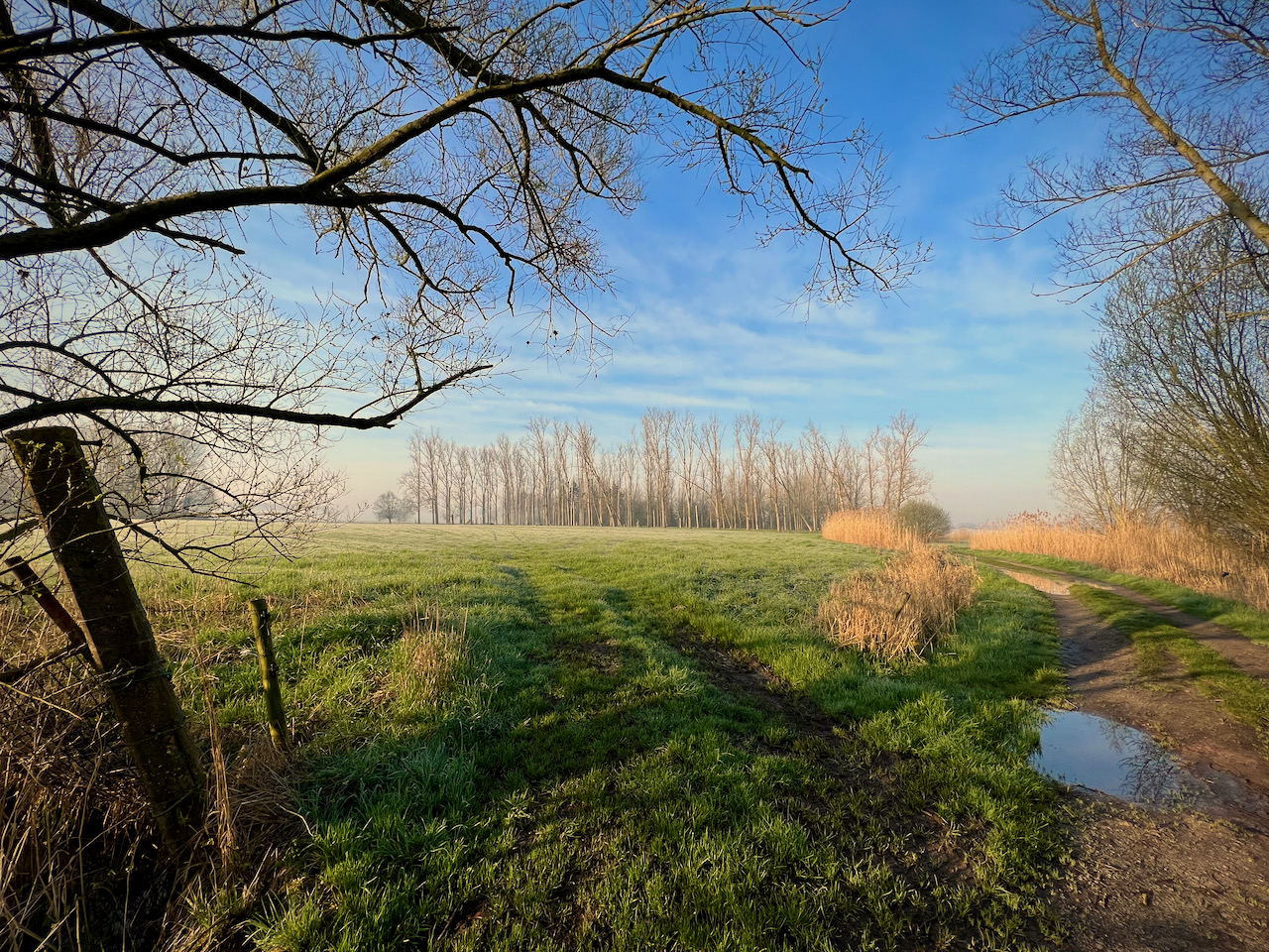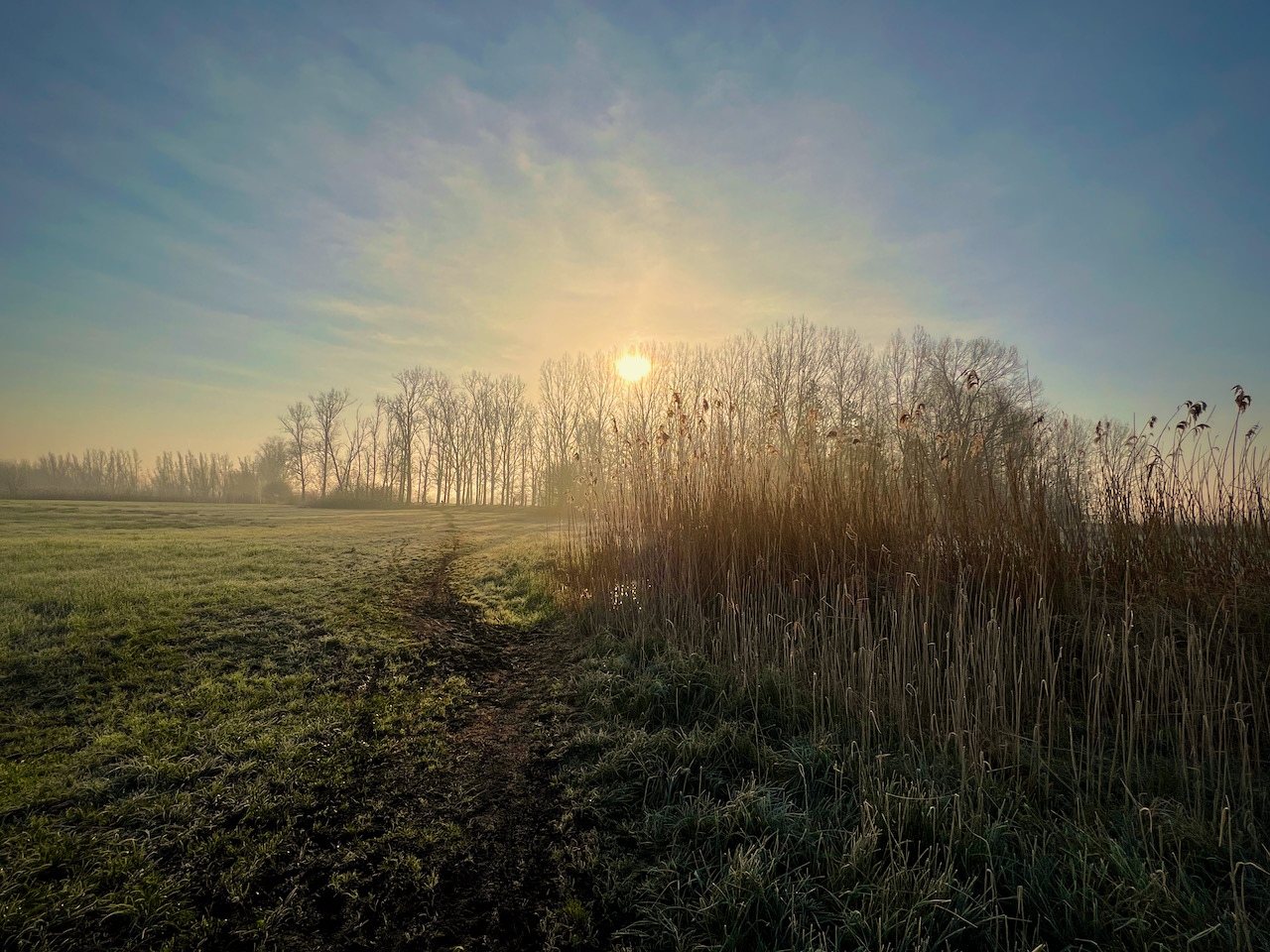 Of ik de Kalkense Meersen zo naderhand niet beu ben? Tuurlijk niet! Sinds ik het natuurgebied op een boogscheut van waar ik woon (her)ontdekt heb, ben ik er niet weg te slaan. Het is mijn favoriete hotspot om te jagen op het licht; ik moet niet eens belachelijk vroeg opstaan om er bij zonsopgang te zijn. Mijn dochter vindt dat ik intussen wel het label ‘ambassadrice van de Kalkense Meersen’ verdien. Zelf draag ik met trots de ordinaire status van topfan (en merci, Routen, om dit in jullie nieuwste magazine te bevestigen). Ik heb er zo mijn vaste, vaak zelfgemaakte routes, maar deze week volgde ik een suggestie van Routen: de Oude Schelde wandelroute. Hoewel ik geen nieuwe plekjes ontdekte — ik stapte deze route al zó vaak spontaan, zonder te letten op knooppunten — zag ik ‘mijn’ Meersen alweer in een ander (gouden) licht, dat van de opkomende zon. Het leverde prachtige foto’s op die ik in deze post graag met jullie deel.