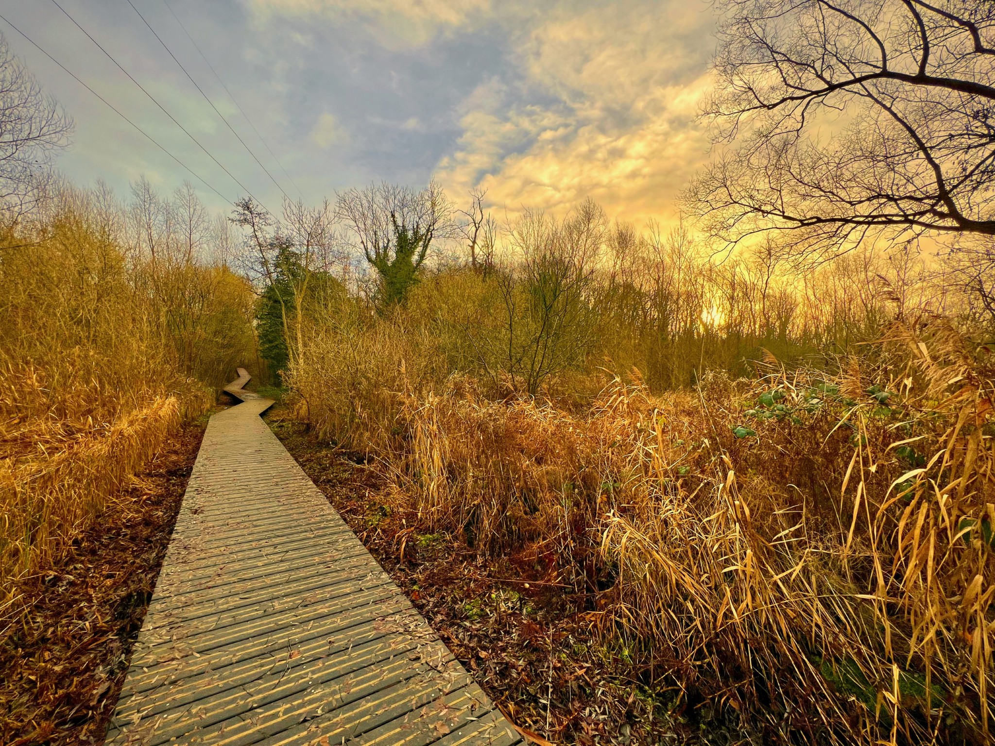 Het natuurgebied maakte bijzonder veel indruk op mij en dat lag echt niet alleen aan de magnifieke plankenpaden. De route voerde mij ook langs bijzondere stukjes bos en in een moerassige open vlakte zag ik de zon steeds hoger klimmen. Deze schitterende start gaf mij alvast een boost voor de 20 kilometer die nog zouden volgen.