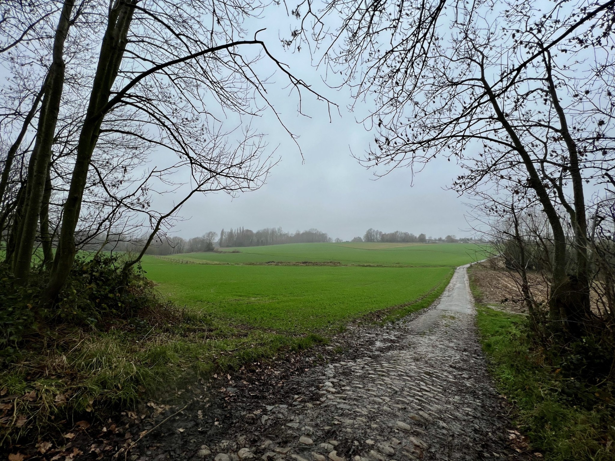 Kerstvakantie da’s tijd, en tijd is wandelen. Vorige week stapte ik van Ronse naar Oudenaarde en ook twee dagen later waagde ik me aan een ferme dagtocht. De groene heuvels van het Pajottenland en de Brabantse Kouters ontdekken langs trage wegen? Om die reden werd ik met plezier lid van TreinTramBus. Dilbeek-Asse, voor een vogel slechts een achttal kilometer, voor koning auto 13, maar deze fantastische Groene Halte wandelroute bracht me met een heuse omweg en hoofdzakelijk langs onverharde paden (!) van het ene naar het andere station. De weersomstandigheden waren erg wisselend en niet altijd ideaal, maar ik genoot van begin tot einde van deze topper van net geen 23 km lang. Alle praktische informatie vind je onderaan dit artikel.