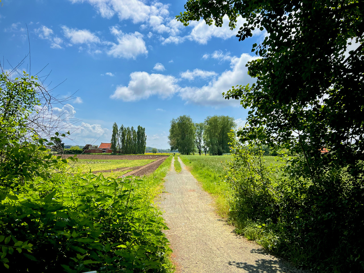 Ik zal je iets bekennen — een commerçant zou zeggen dat ik tegen mijn eigen winkel spreek —: ik doe zelden research alvorens ik ga wandelen. Ik hou wel van die onbevangenheid, laat me nogal graag verrassen. Over de wandeling die ik in het West-Vlaamse Zedelgem zou maken, wist ik enkel dat ze 8,9 km lang en hoofdzakelijk onverhard was. Het is eigenlijk steeds vooral die laatste parameter die me naar een welbepaalde route lokt. Dat ik er naast natuur ook wat geschiedenis bij zou krijgen, had ik niet verwacht. Al viel dat brokje historie op Pinkstermaandag wel wat tegen: het kamphuis, het kloppende hart van Vloethemveld, was namelijk die dag gesloten. Kamphuis? In al mijn enthousiasme — want ná een wandeling duik ik wél volop in de archieven — loop ik voorop op de zaak.