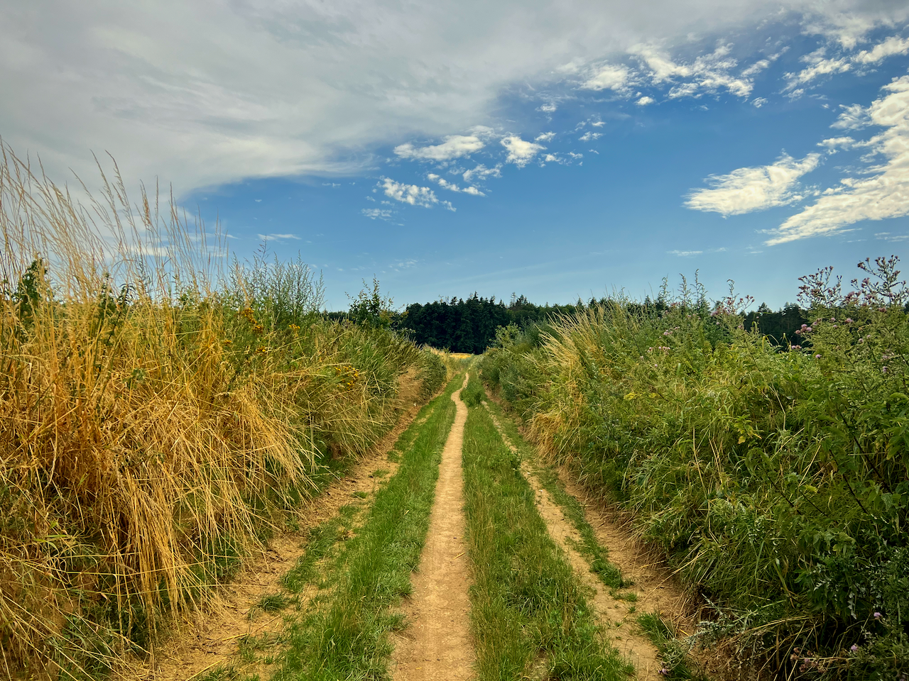 Voor zondag voorspelden ze onweer, dus reed mijn lief met mij op zaterdag naar de andere kant van ’t land. Bestemming: Bierbeek. We startten de Schavaaiwandeling onder een blauwe hemel met hier en daar een pluizend sluierwolkje, maar al snel werd de lucht dreigend donker. Desondanks genoten we met volle teugen van deze knooppuntenroute van 7,7 km die ons via glooiende holle wegen, kasseibaantjes, kerk-, bos- en veldwegels langs weidse kouters, oude, goed bewaarde hoevetjes en het Mollendaalbos voerde. Een topper!