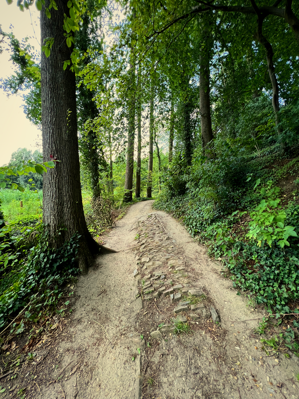 Voorbij het bos leidt een veldweg je terug naar de kasseien van de Oude Geldenaaksebaan, en passant langs een witloofboerdij, vooraleer je terugkomt op de Speelpleinstraat. Trouwens, de Schavaaiwandeling is dan wel voor 19 % verhard, maar dit zijn op zo’n 500 meter na allemaal kasseien. En wat voor kasseien! De weersomstandigheden waren op die dag niet altijd even ideaal, maar misschien had dat ook wel zijn voordelen. Andere wandelaars kwam ik bijvoorbeeld niet tegen, al werden de rust en stilte af en toe verstoord door gravelbikers die, soms iets te onstuimig, door de holle wegen crossten.