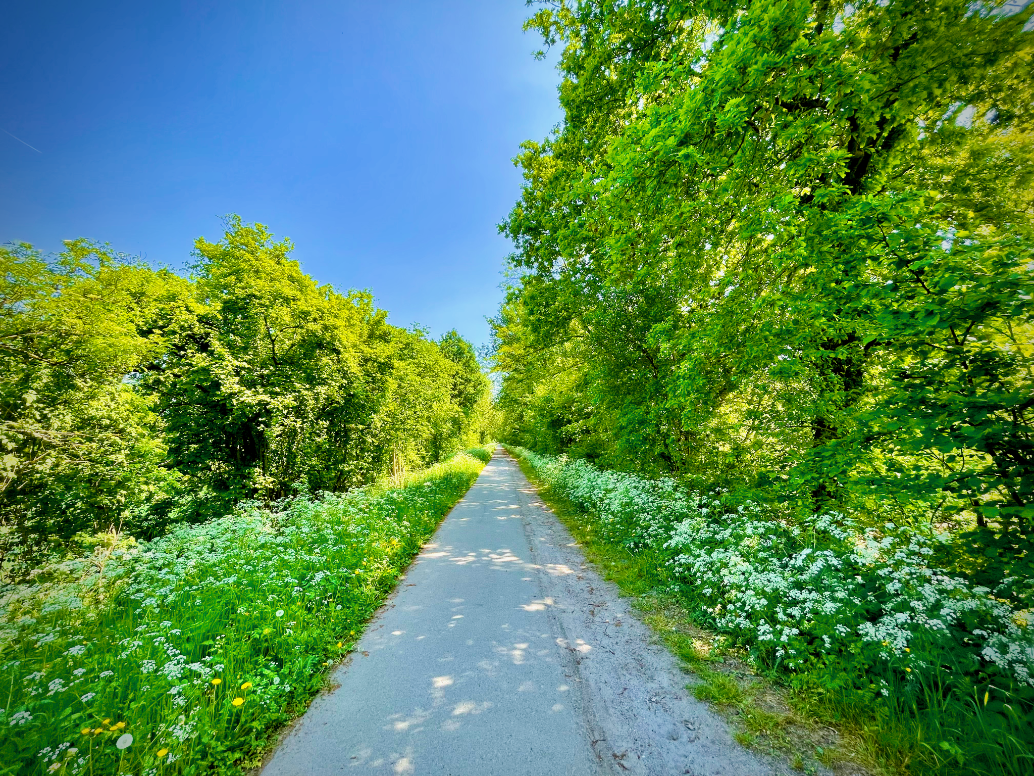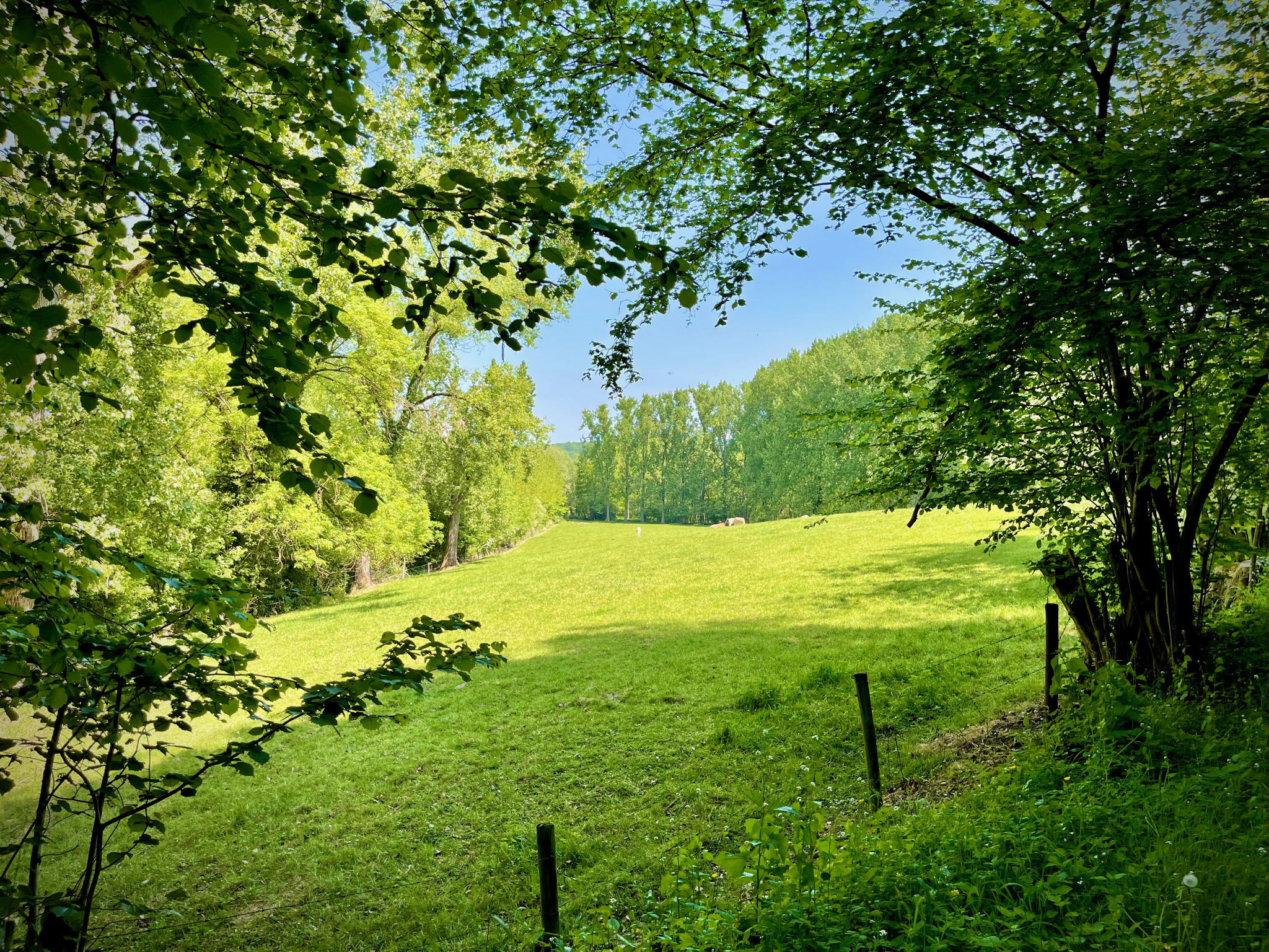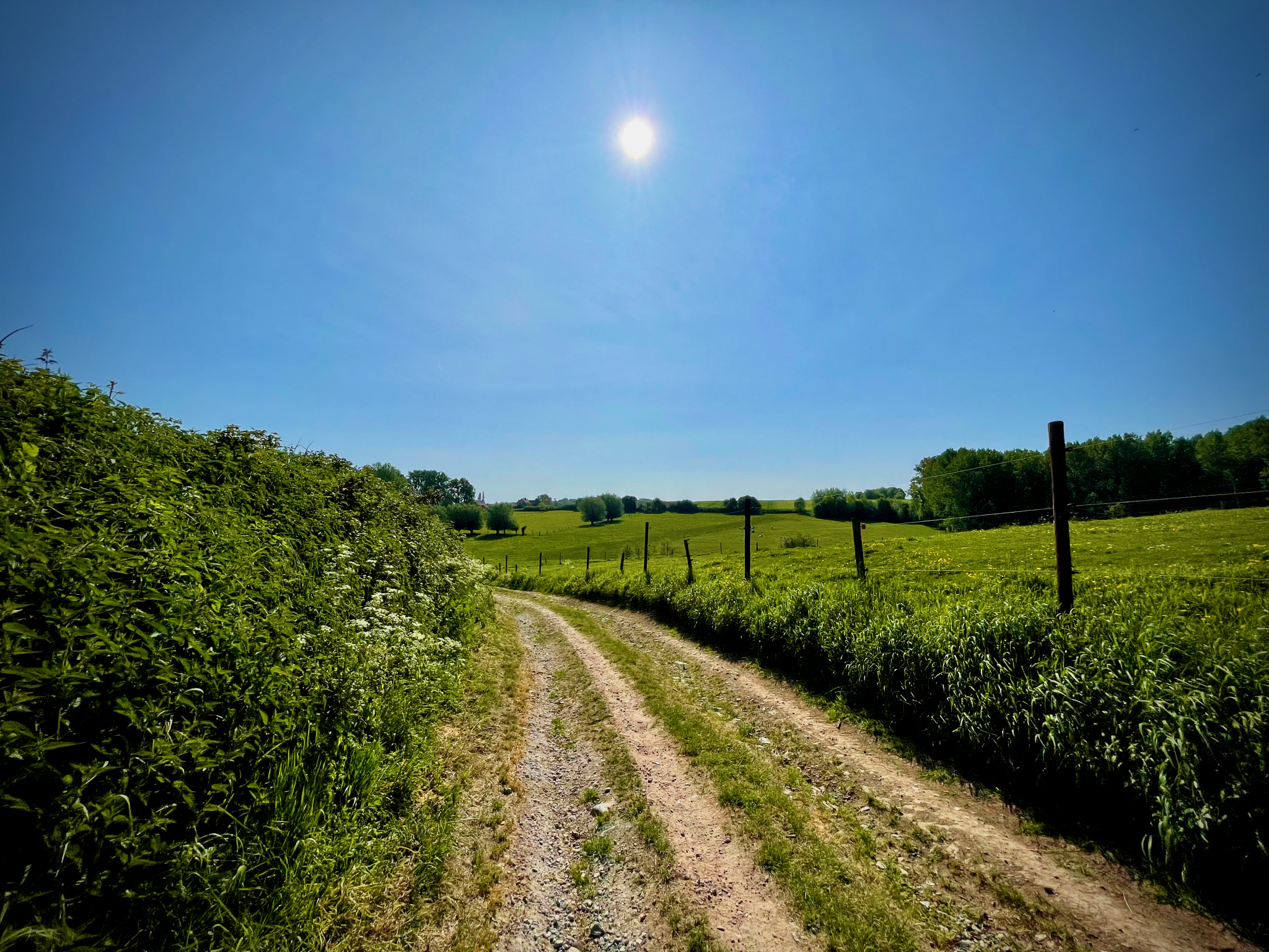 Voorbij het Muziekbos en de kapel van Onze-Lieve-Vrouw van Lorette (de oudst bewaarde kapel van Ronse) stak ik, aan de voet van de Kanarieberg, de grote steenweg over om aan de overkant in Wallonië te belanden. Een ferme klim bracht me verder in het dorpje Ellezelles op de oude spoorweg die ik een vijftal kilometer volgde tot in Flobecq. L’Ancien Chemin de Fer Ligne 87 is nu een aangenaam, geasfalteerd fiets- en wandelpad.