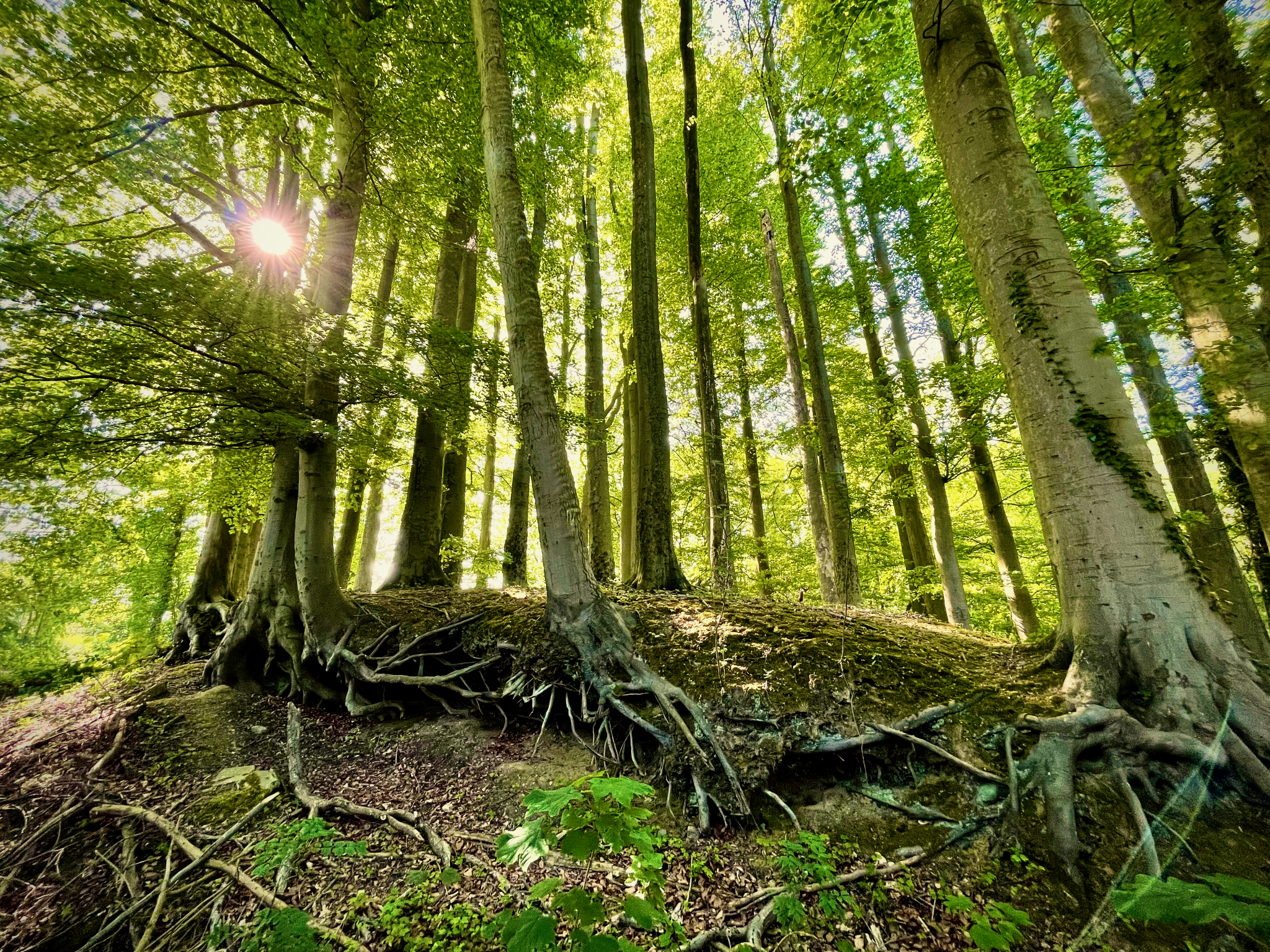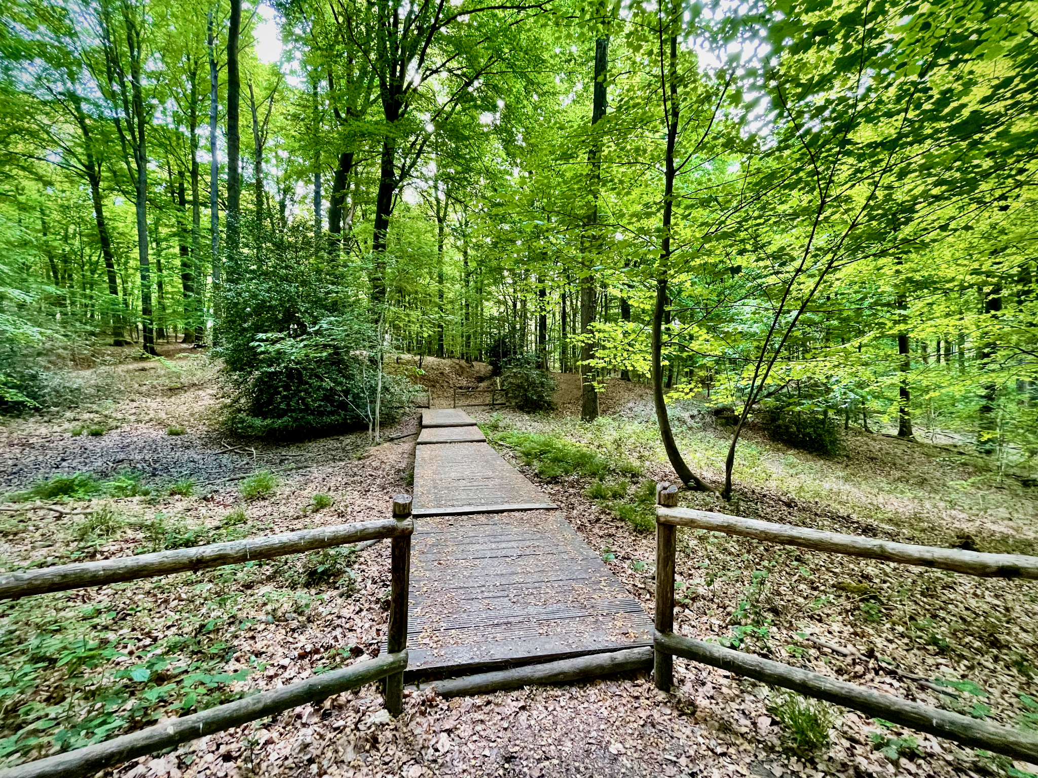 Vervolgens zette ik mijn route verder in de richting van Ronse. Vooraleer ik terechtkwam in het Muziekbos, passeerde ik eerst nog langs het kleinere maar daarom niet minder mooie Bos ter Eecken. Beide bossen worden (deels) beheerd door het Agentschap voor Natuur en Bos. Ze vormen een beschermd landschap waarin je niet zomaar overal vrij mag rondlopen. De bospaden boeten echter niets aan authenticiteit in. De bewoonde wereld lijkt mijlenver weg; een sprookjeswereld vlakbij. Bijzondere vegetatie draagt daar nog toe bij.