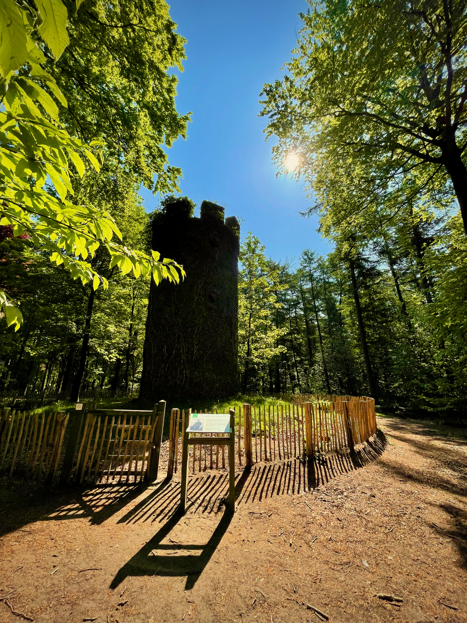 Op het hoogste punt van het Muziekbos staat de Geuzentoren, in 1864 opgetrokken op een oude grafheuvel uit de Bronstijd. Vanop die toren, terwijl hij het landschap bewonderde, riep dichter Pol De Mont ooit : “Maar dat zijn hier de Vlaamse Ardennen!” En zo kwam de streek aan zijn passende bijnaam. Een tweede grafheuvel of tumulus vind je een beetje verderop; deze werd wel bewaard in zijn oorspronkelijke toestand.