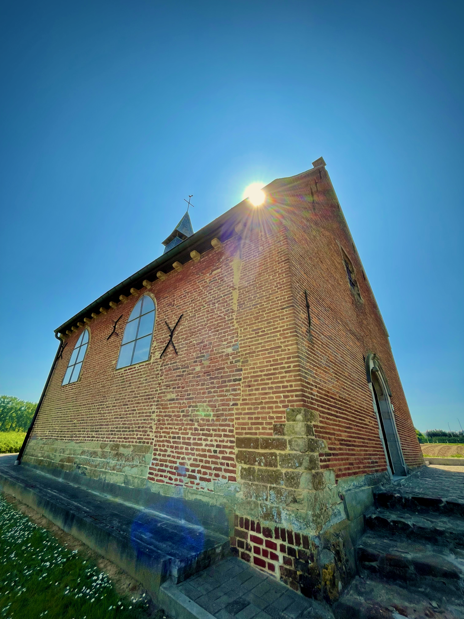 Omwille van praktische redenen (de afstand van bij mij thuis en parkeergelegenheid) startte ik aan de kerk van Schorisse aan de rand van de gemeente. Schorisse is een kleine deelgemeente van Maarkedal en een taalgrensgemeente met Henegouwen. Het landbouwdorp is niet meer dan een straatdorp in een sterk heuvelend landschap ingesneden door diverse beekvalleien. Zo heb je er de Molenbeek met een watermolen die nog steeds in werking is. De molen hing vroeger af van het kasteel van Schorisse dat zelf volledig verdwenen is.