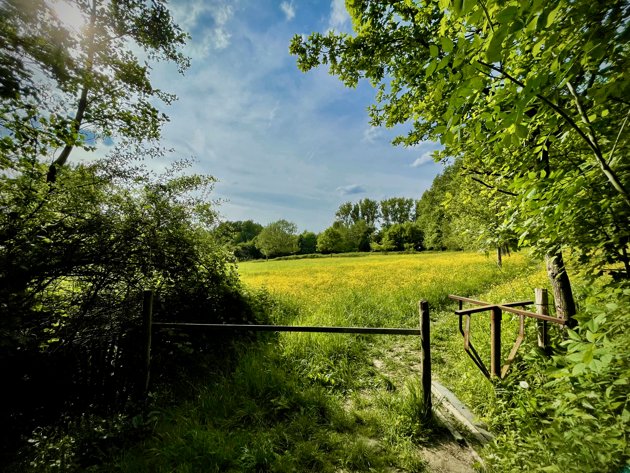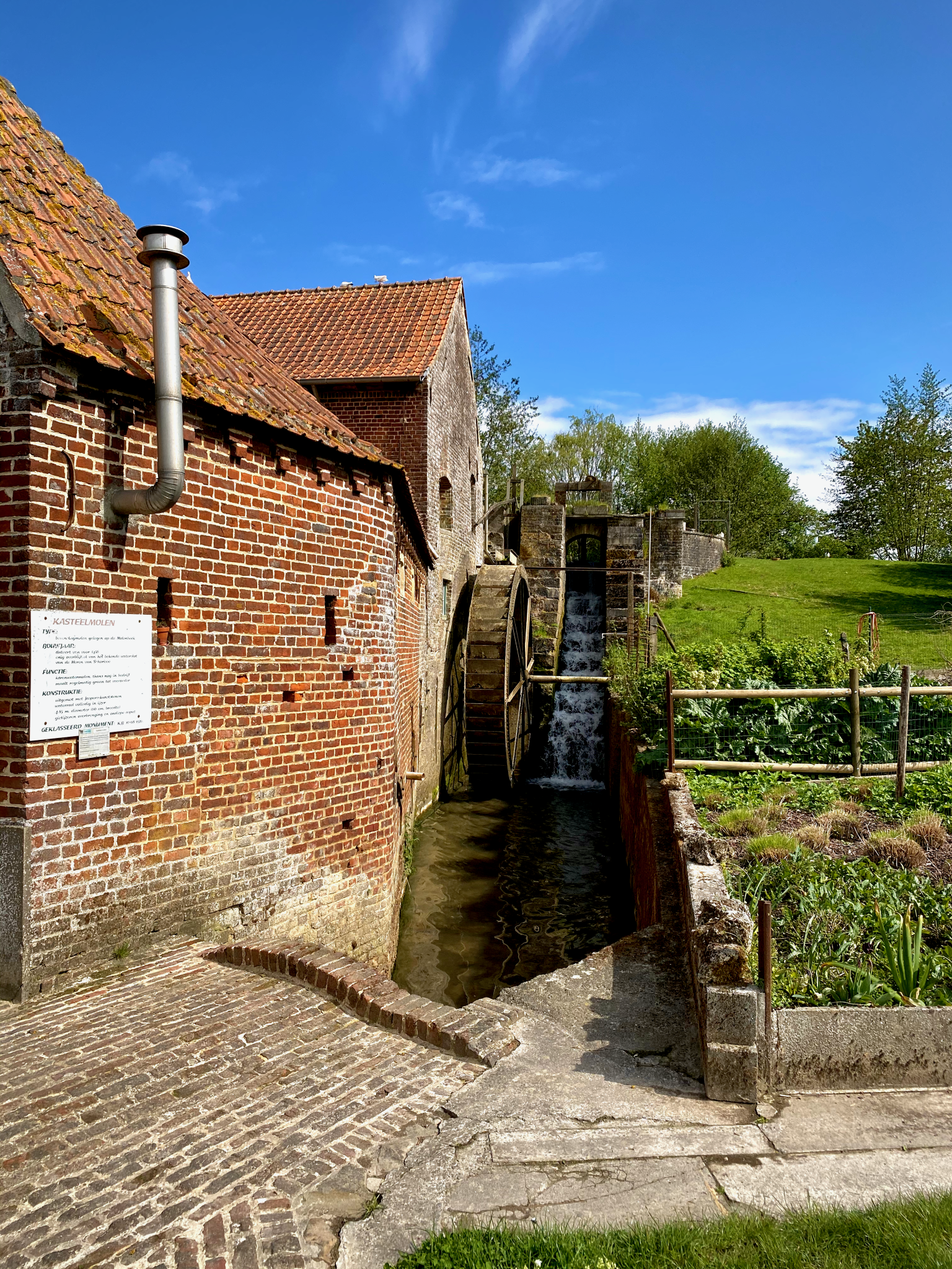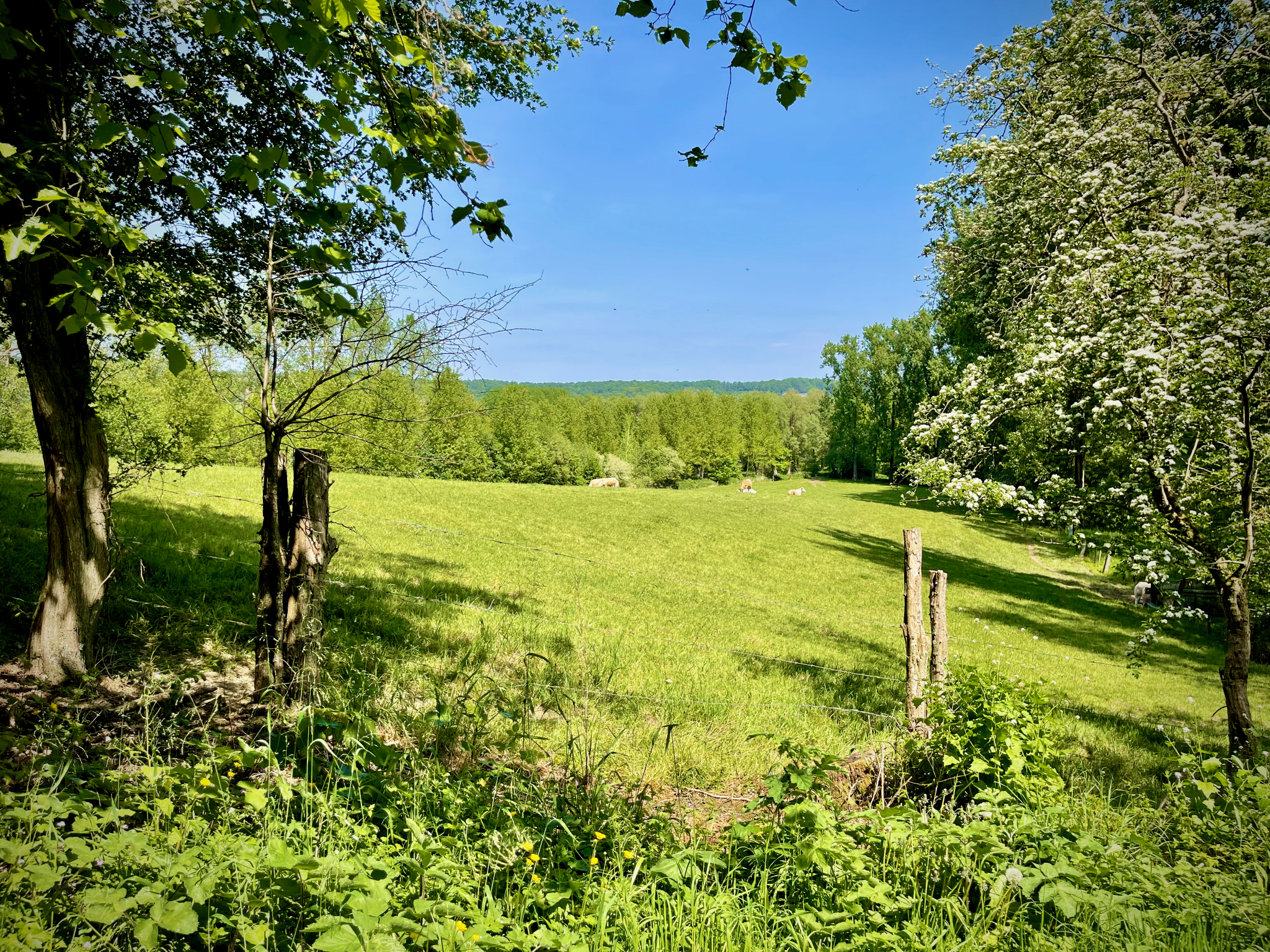 Vanaf de Sint-Pieterskerk volgde ik het wegwijzertje richting knooppunt 22 dat me naar de voetweg langs de Kasteelmolen bracht. Dit pad kende ik al o.a. van op de Omer Wattez wandelroute, een ode aan de grondlegger van het toerisme in de Vlaamse Ardennen. In de Heirwegstraat moest ik wel even zoeken. De route loopt er immers door een weide achter een huis en is niet meteen zichtbaar vanaf de straat. Wandel je liever niet tussen de koeien, volg dan de Kerkweg of de Langestraat tot op de Kaperij.
