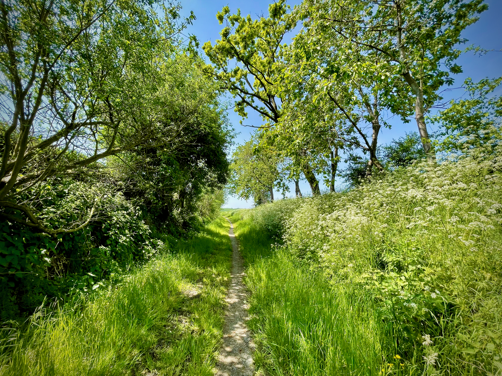 Mijn grootste zorg bij langeafstandswandelingen is niet of ik het ga halen — OIGO, weet je wel — maar wel of er voldoende onverharde wegen zullen zijn. De Taalgrens wandelroute is 38 % verhard, maar op een enkele uitzondering na zijn die verharde wegen nauwe, kronkelende, soms steile maar altijd charmante plattelandsstraatjes of begrinte, af en toe geasfalteerde wandelpaden. Voeg daar zo’n 730 hoogtemeters aan toe en je begrijpt wel waarom dit geen tochtje is voor ongeoefende kuiten.
