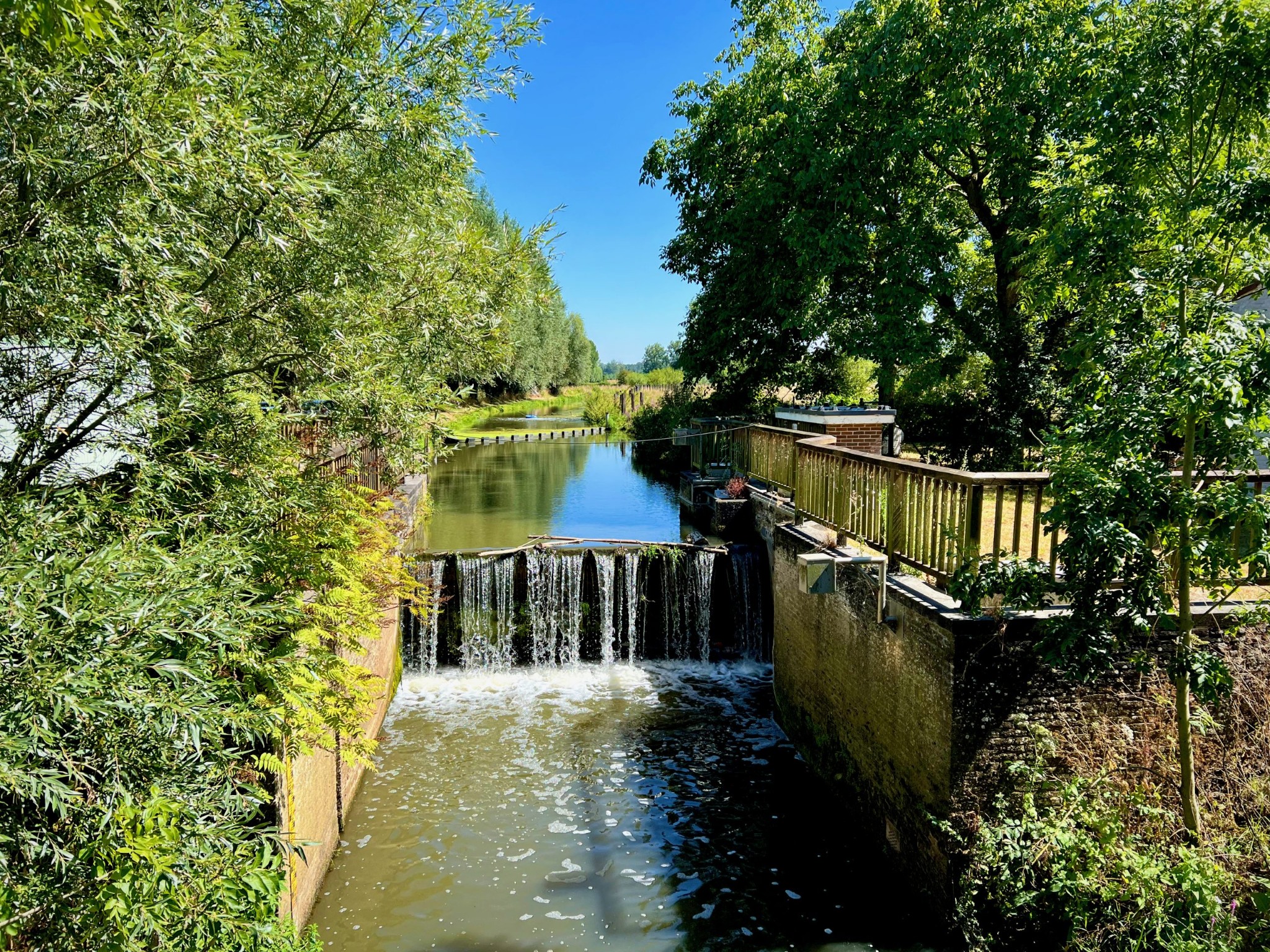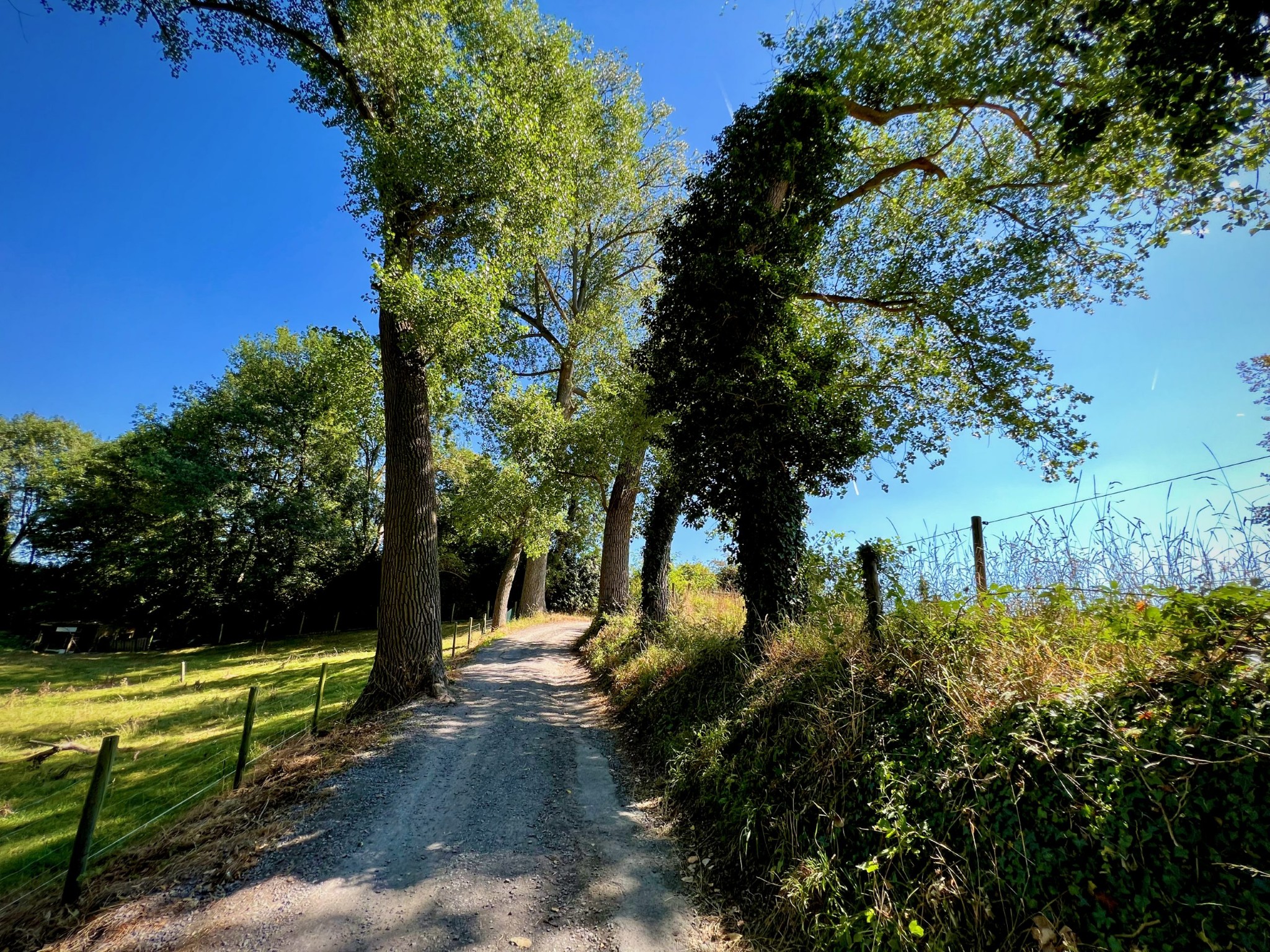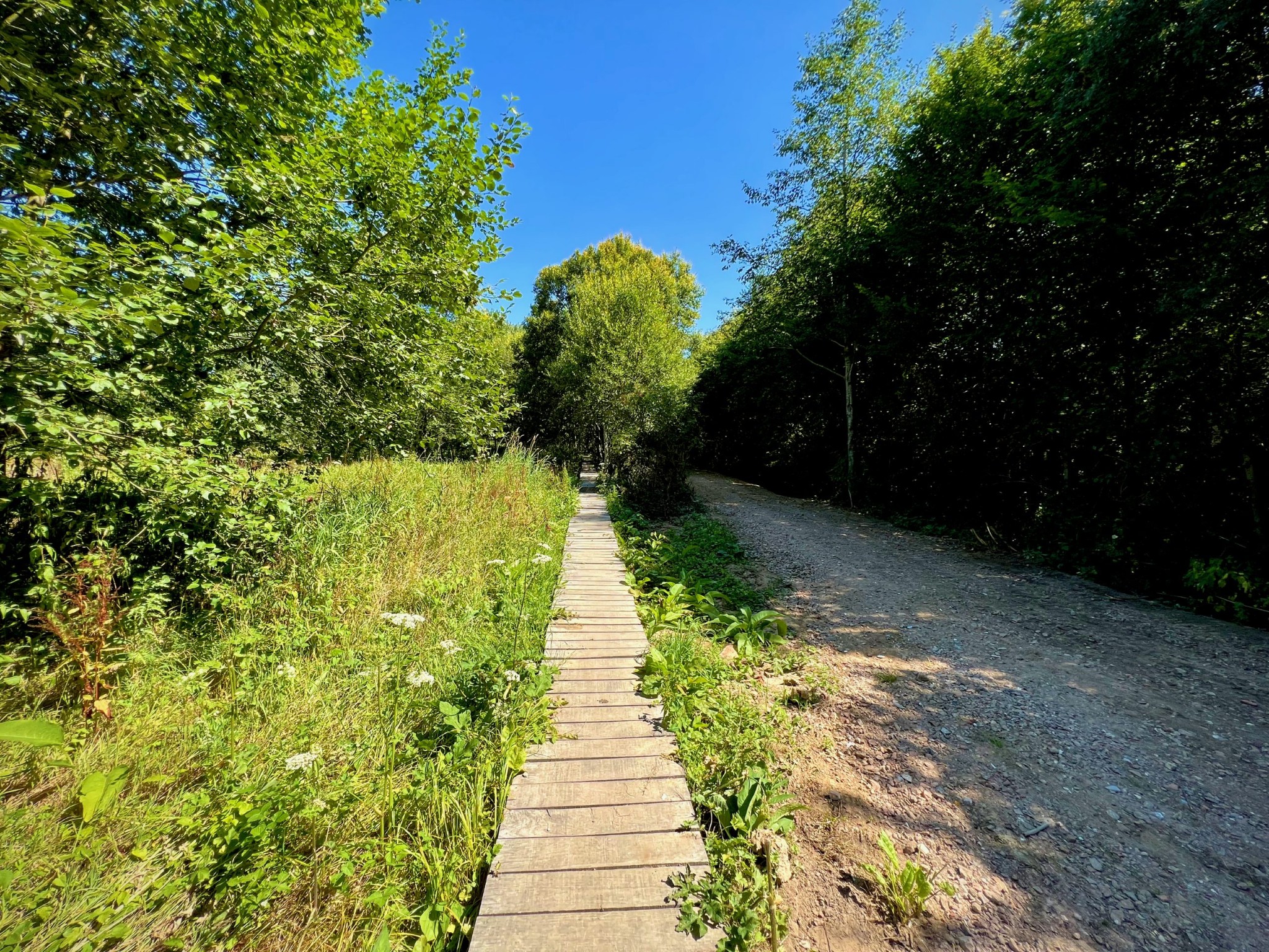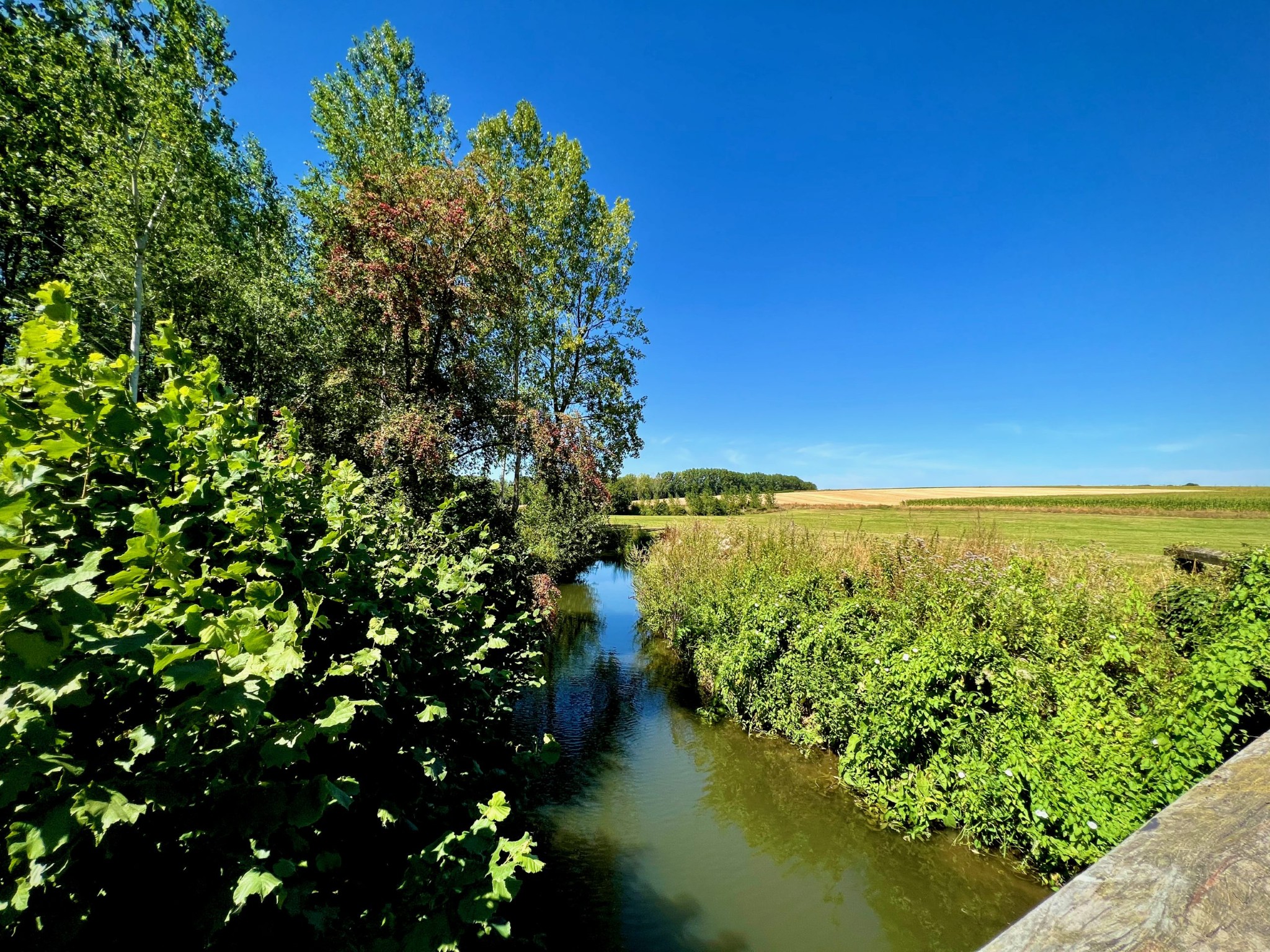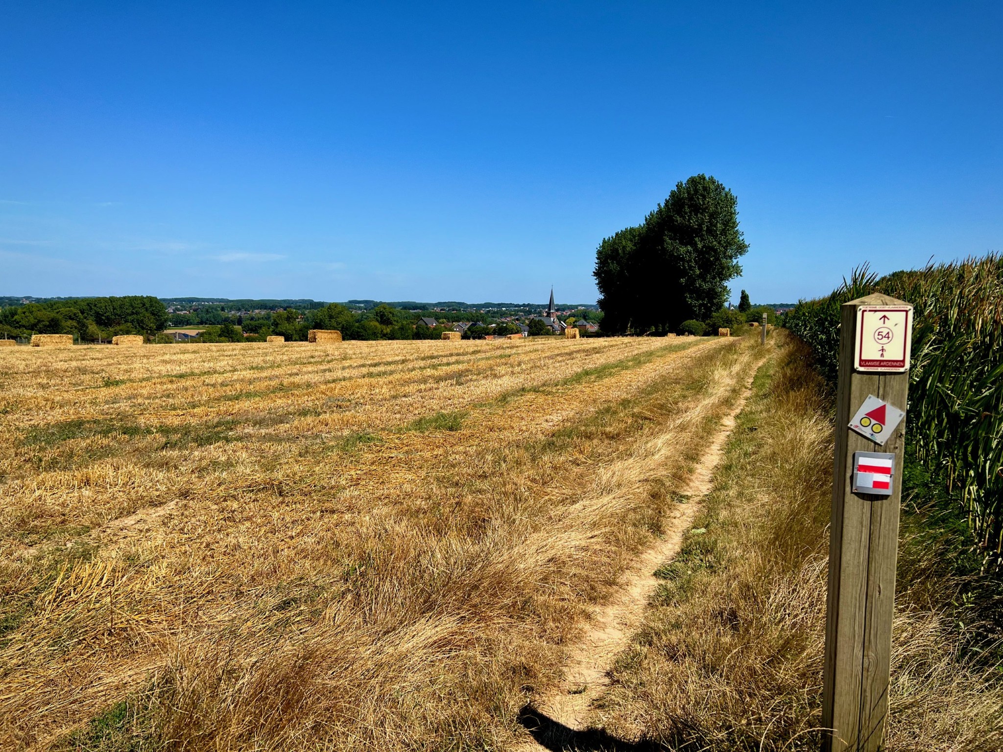 Natuurgebied Middenloop-Zwalm bestaat uit verschillende deelgebieden (Rozenhoek, Vossenhol, Jan de Lichte, Jansveld …) waarvan je er een groot aantal aandoet op de treinstapper tussen Lierde en Munkzwalm. Het landschap van de vallei, die regelmatig overstroomt, bestaat uit een groen lappendeken van beekdalbossen, graslanden en moerassige gedeelten met hier en daar vlonderpaadjes. Die laatste vond ik natuurlijk heerlijk — ook al waren ze met dit kurkdroge weer overbodig — maar wat me vooral zal bijblijven van deze mooie wandelroute zijn de stukken langs verkoelende bossen.