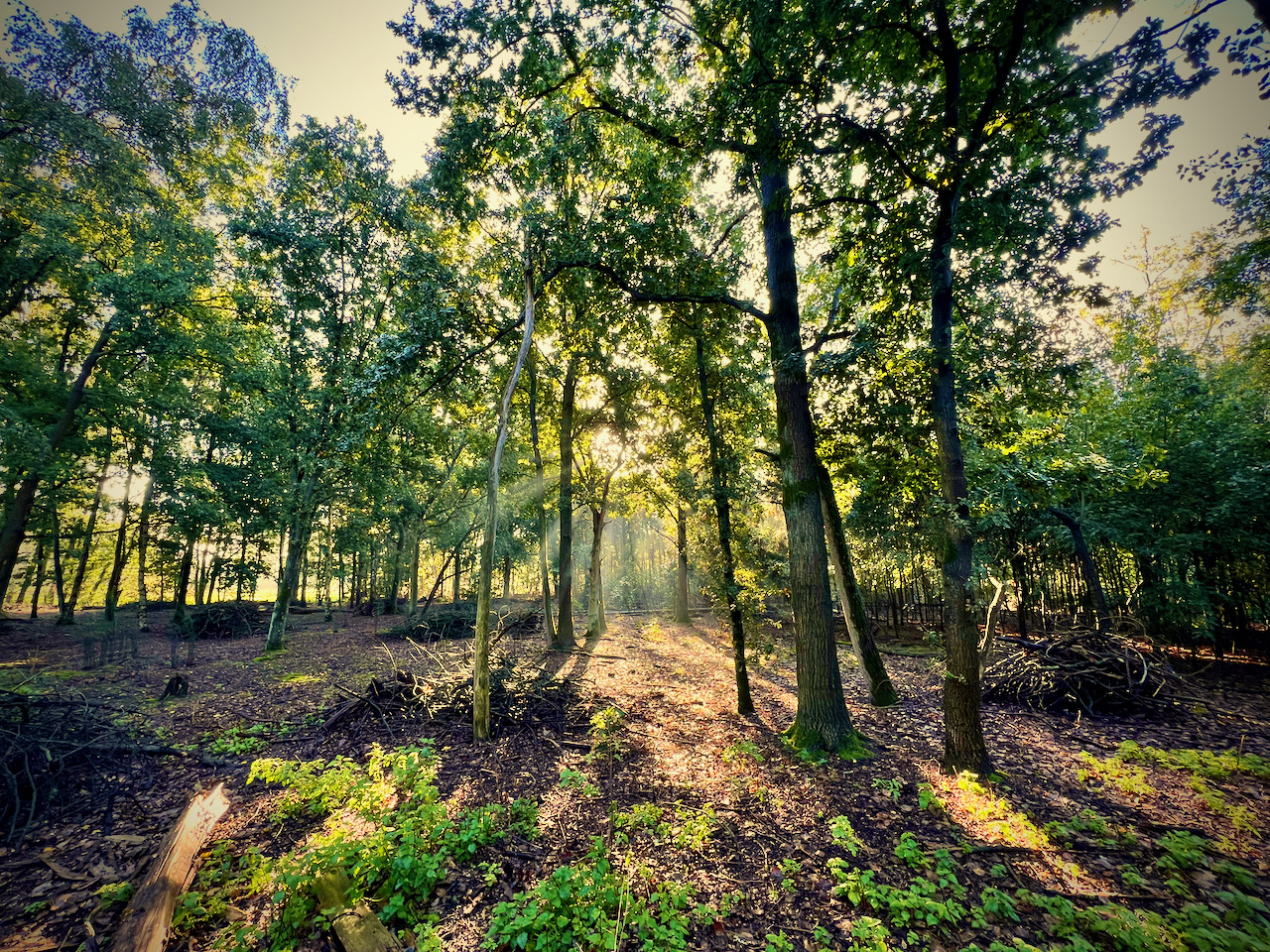 Bos? Jazeker! Ik wist dat er hier een bos was, ietwat verscholen achter de ringdijk, maar zo mooi had ik het niet verwacht. Op deze plek waande ik me even ver weg van alles, ook al is het geen oeroud, dichtbegroeid woud met reuzehoge bomen en is het jaagpad eigenlijk vlakbij. Maar alleen al het feit dat ik hier ontelbare keren voorbijfietste zonder mij bewust te zijn van dit magische plekje, maakte het des te charmanter.